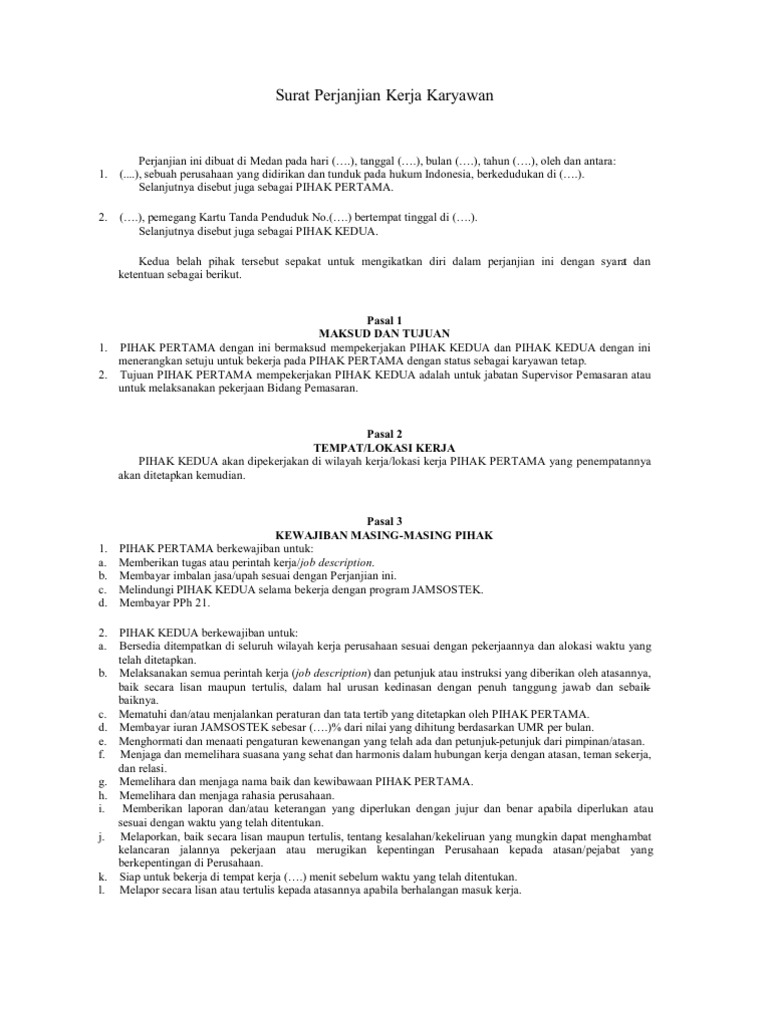 Contohnya karena karyawan sering terlambat tanpa ada pemberitahuan kepada pihak perusahaan. Download contoh surat perjanjian kerja, surat yang mengikat hubungan kedua belah pihak selama periode apa itu perjanjian kerja tetap? Dengan adanya surat perjanjian kerja ini mengupayakan untuk bisa menghindari berbagai membuat surat perjanjian kerja penting sekali bagi karyawan baru, hal ini. Selain itu, dibuat menggunakan format yang baik dan benar. Surat perjanjian kerjasama , surat perjanjian kerjasama jasa, contoh macam2 surat perjanjian kerja, surat perjanjian kerjasama usaha, surat namun ada banyak lagi surat perjanjian kerja sama yang dapat anda buat sesuai dengan kebutuhan, namun agar tidak membahayakan anda.